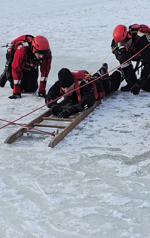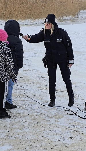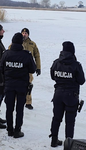 Policjanci zwracali uwagę na prawidłowe zachowanie świadków zdarzenia. Przypominali, że w pierwszej kolejności należy wezwać pomoc, dzwoniąc pod numer alarmowy 112, a następnie- jeśli to możliwe- udzielać pomocy z bezpiecznej odległości, wykorzystując długie przedmioty, takie jak gałąź, szalik czy kurtka. Zdecydowanie odradzano wchodzenie na lód bez odpowiedniego zabezpieczenia.